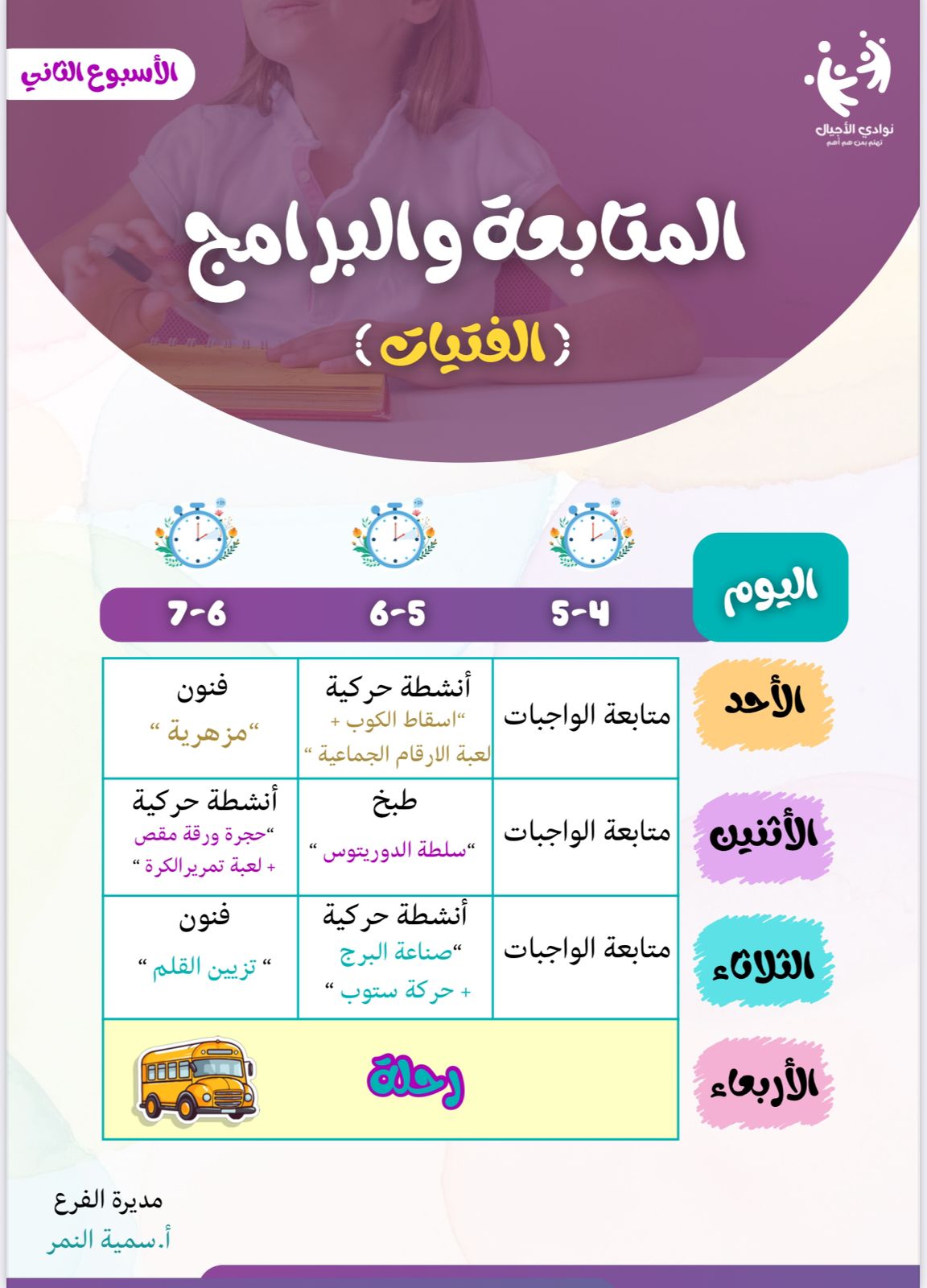 نوادي الأجيال تعود من جديد ببرنامج المتابعة والترفيه حيث التعلم والمرح ✨ ...